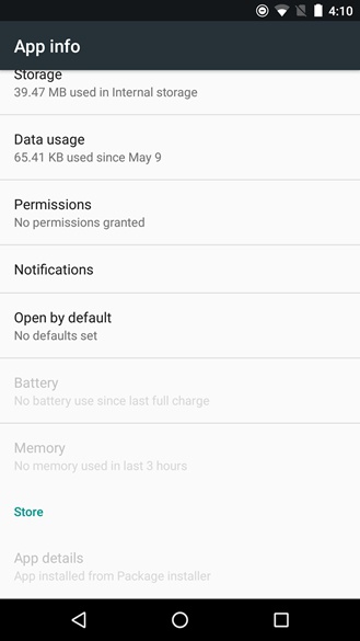 A origem do aplicativo será exibida na tela de informações do aplicativo, no menu Apps das configurações. Na versão em inglês, há uma nova seção "Store" que traz a informação "App details". Nesse menu, o Android diz se o app veio da Google Play ou de um "Package Installer", ou instalador de pacote.