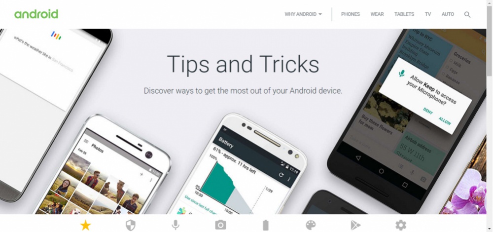 A página está disponível dentro do site oficial do Android e se chama "Tips and Tricks". Infelizmente o site está completamente em inglês, mas é possível traduzi-la através da ferramenta de tradutor do Google. Entre as principais funções, são listadas dicas sobre o Google Photos, autonomia da bateria, customização, comandos por voz, Google Now, medidas de segurança com um celular perdido ou roubado e Play Music.