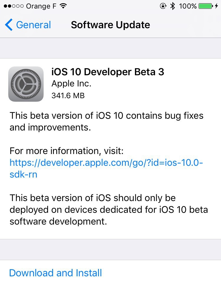 Em alguns dispositivos já é possível ver a mensagem "iOS Developer Beta 3" disponível para instalação. No entanto, usuários de "contas públicas" de desenvolvedores, isto é, não pagam US$ 99 anuais (cerca de R$ 350 na conversão direta) para a companhia de Cupertino, podem ter acesso restrito a tal atualização.