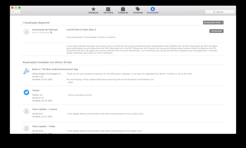 Para o macOS Sierra Beta Public 2, as novidades foram bem menos notáveis, focando-se apenas na correção de bugs e desempenho.