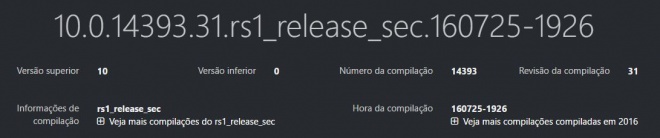 Após vermos a chegada da build 14393.5 aos inscritos no ciclo rápido do grupo de testes, eis que surgem informações sobre a versão de número 14393.31, sendo assim um salto considerável que demonstra que podemos ter finalmente a solução para diversos problemas que ainda atrapalhavam usuários em diversos dispositivos. Algo interessante que merece destaque é o fato desta compilação ter sido marcada como "Release Security" enquanto as duas anteriores foram identificadas por "Release in Market", dando a entender assim que as principais mudanças foram relacionadas à segurança da plataforma.