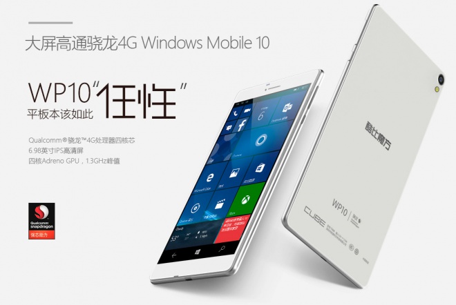 Já a CUBE acaba de anunciar um novo smartphone com tela de 6.98 polegadas IPS e processador Snapdragon quad-core que roda a 1,3 GHz (não foi informado exatamente o modelo). A companhia não divulgou o nome do dispositivo, apenas essas especificações juntamente a uma GPU Adreno (também sem maiores informações) e bateria de 3000 mAh. E roda em Windows 10 Mobile.