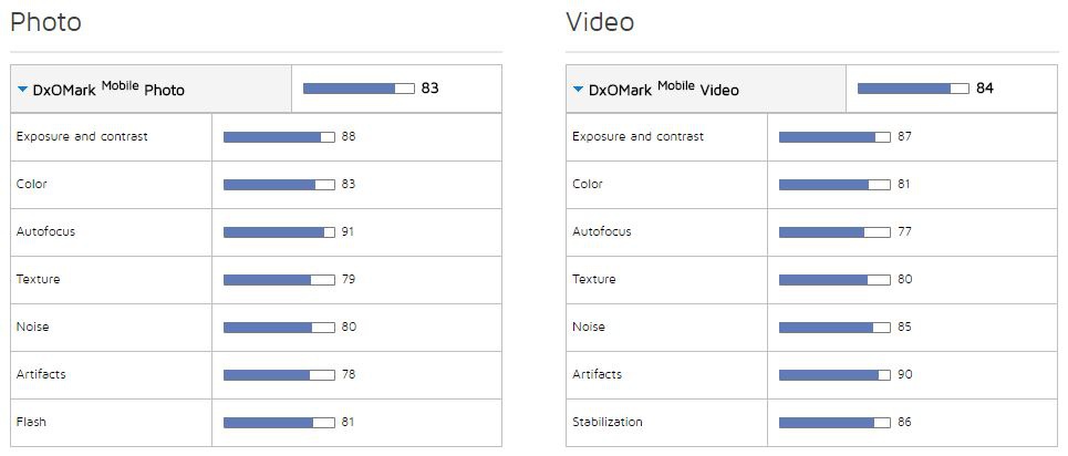 Em vídeo, as pontuações mais altas alcançadas ficaram por conta da capacidade de entregar um ótimo nível de detalhes mesmo em ambientes noturnos, além de conseguir balancear muito bem os níveis de exposição e contraste e contar com um sistema de estabilização óptico eficaz, evitando que as cenas saiam tremidas ou com borrões nas movimentações. Os prós e contras, de acordo com o DxOMark, se resumem a: