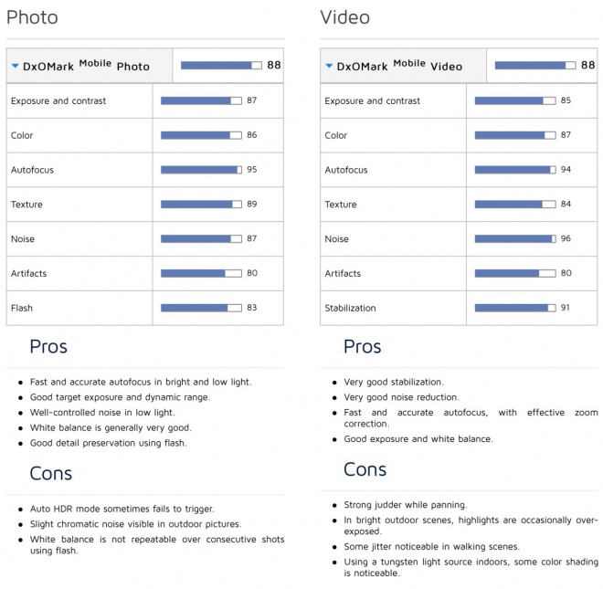Como pode ser visto na imagem acima, com relação à captura de imagens o Xperia X Performance impressiona principalmente pela velocidade do foco automático, chegando muito próximo da pontuação máxima possível. Já sobre a gravação de vídeos, temos dois grandes destaques, sendo novamente a velocidade de foco mas também incluindo desta vez a quantidade de ruído digital presente, que de acordo com o portal é extremamente satisfatório mesmo em ambientes de baixa luminosidade.