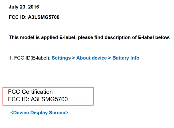 O modelo registrado é o SM-G5700, sucessor direto do SM-G5500. Como esperado deste tipo de certificação, não há detalhes sobre o hardware, onde apenas é informado que o novo aparelho é compatível com redes 4G LTE. Além disso, também é exibida a data em que o On5 (2016) ganhou aprovação, como visto na imagem abaixo, 23 de julho de 2016.