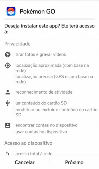 Uma coisa que provavelmente nem 1% dos jogadores vão dar importância, mas que pode ser extremamente perigoso, são as permissões exigidas pelo app quando da instalação. A versão de Android inclui autorizações como encontrar contas no dispositivo e acesso total à rede. Aparentemente todas as permissões possuem uma explicação plausível, mas isso não quer dizer que está tudo bem.