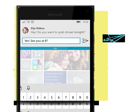 Suas chamadas e mensages de texto agora podem ser 100% por voz do começo ao fim. Cortana poderá discar e digitar por você sem a necessidade de você utilizar os dedos! Mas mantenha os dedos, você vai precisar deles para outras coisas.