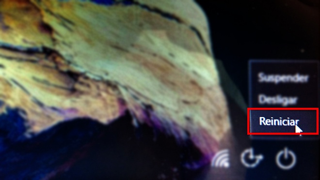 Reinicie o computador. Ao retornar para a tela de login – onde você vê sua foto de perfil – segure a tecla Shift e, no canto inferior direito, selecione “Reiniciar”.