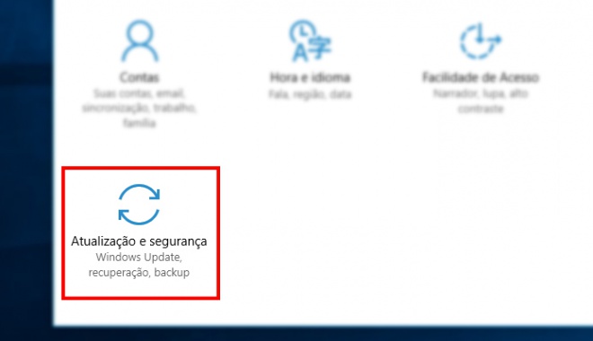 Selecione o menu “Atualização e segurança”.