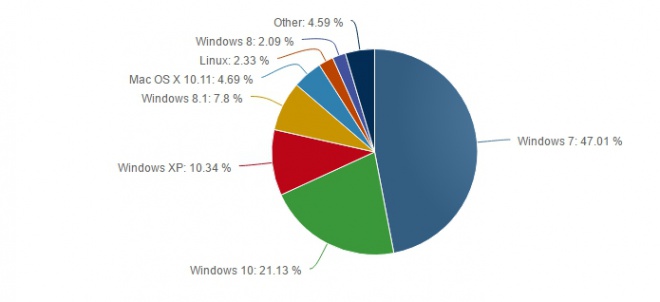 O Windows 10, mais recente sistema operacional da Microsoft, não é o mais utilizado no mercado. O software está instalado em 21% das máquinas e ainda atrás do Windows 7, que representa 47% dos computadores.