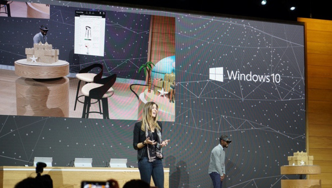Exibindo diretamente em um exemplo no palco, a equipe envolvida na futura atualização do Windows 10 demonstrou como as plataformas trabalham de forma simultânea para exibir um resultado final impressionante, que mescla com maestria e de forma simples elementos na realidade virtual e o mundo real.