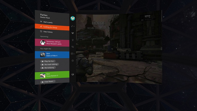Por enquanto, essa será a única maneira de aproveitar algum tipo de imersão nos títulos para Xbox. E, mesmo assim, será uma experiência adaptada: nenhum jogo do console da Microsoft (ou de qualquer outro) oferece suporte completo a realidade virtual. O resultado é uma espécie de "sala" para jogar jogos em 2D, sem interferência do ambiente externo.