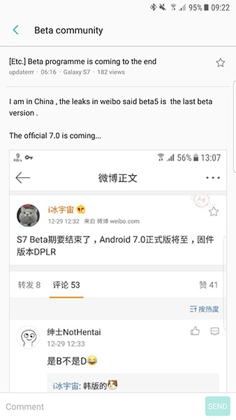 Novas publicações vazadas nesta semana na plataforma social Weibo, da China, apontam que o beta liberado para família Galaxy S7, de fato, será o último lançado pela Samsung e a chegada da versão definitiva é iminente.