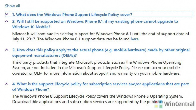 O suporte oficial do Windows Phone 8.1 terminará em 11 de julho de 2017, como pode ser vista na página da empresa.